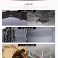 1. 廣泛用于外墻、廁浴廚間、游泳池、地下室、屋面及其它建筑物的防水、防滲漏、防潮等工程。