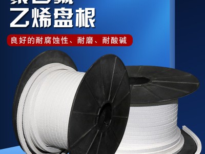 四氟盤根由純聚四氟乙烯生料帶編織而成的,不經PTFE乳液及潤滑油脂處理。因是由實心編織而具有柔韌可調性,所以與軸,填料箱能很好的 配合有卓越的耐腐蝕性能,良好的自潤滑性和防粘貼性,被建議用于化工、食品、等不允許有污染的操作場合,也可用于除了可溶性堿金屬以外的所有化學介質的場合。
